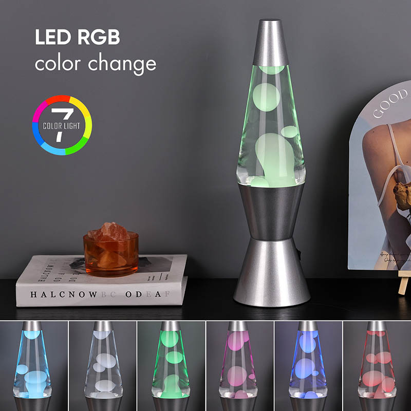 15 дюймдік RGB LED лава шамының төменгі жағында 7 түс өзгереді. түсі лавамен ақ.