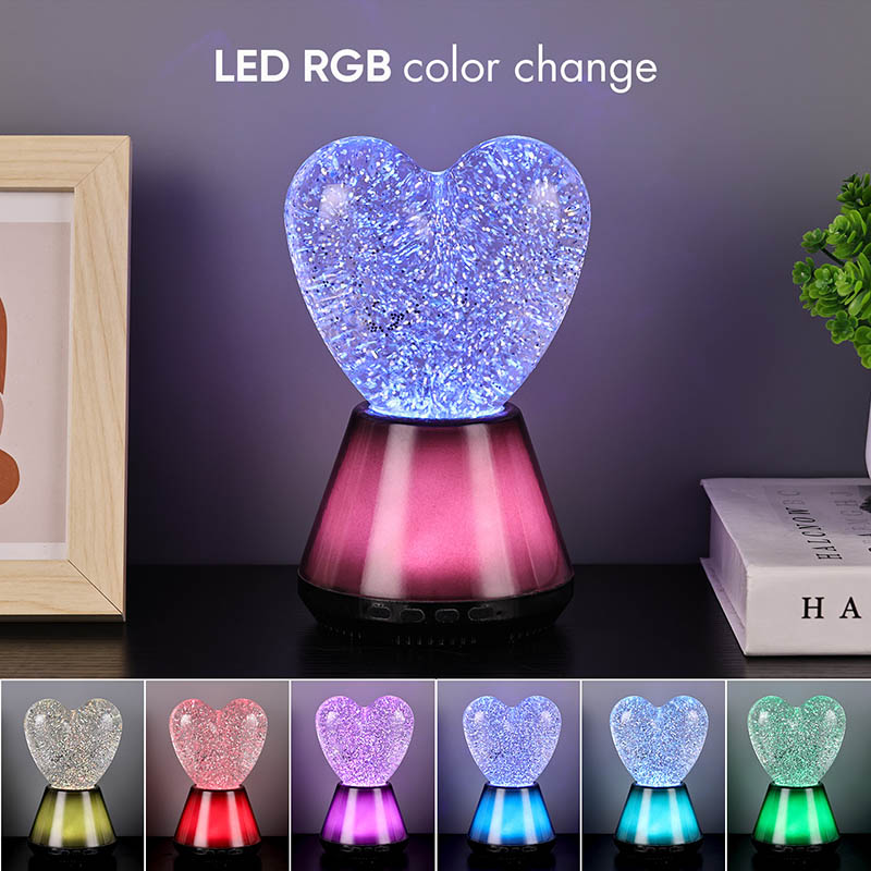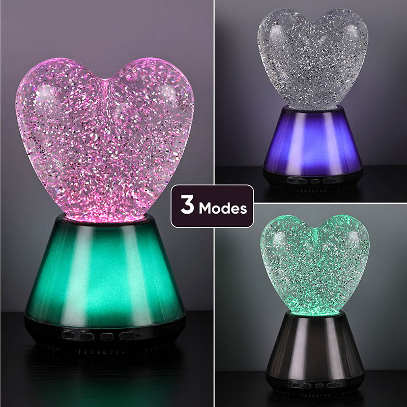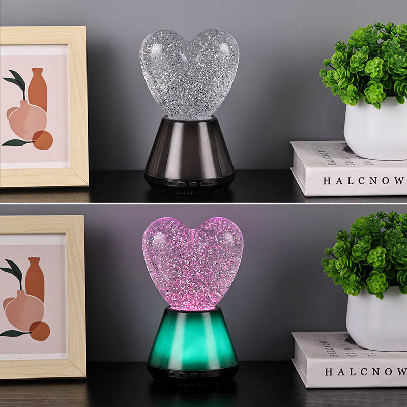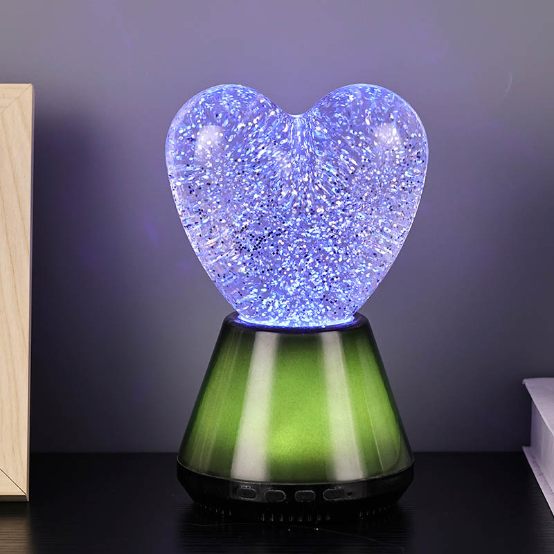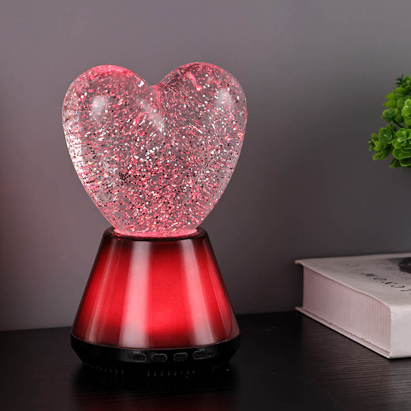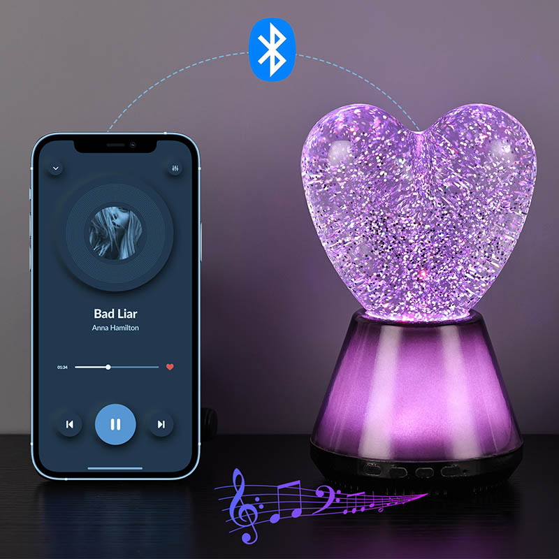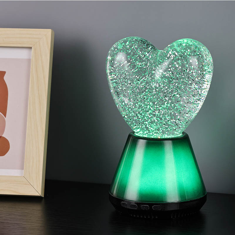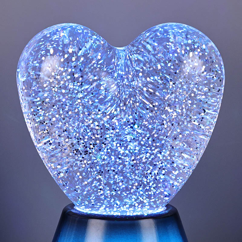 Bluetooth басқаруындағы жарқыраған жүрек түнгі шамының ішкі бөлігі сансыз жарқыраған блестки қалқып тұратын жұмбақ сұйықтықпен толтырылған. Шам қосылған кезде сұйықтық жүрек тәрізді шыны шардың ішіне баяу ағып, армандай әсер етеді. Бұл блестки шашыраңқы жұлдыздарға ұқсайды, сұйықтықта ақырын қалқып, адамдарға жұлдызды аспанда болу сезімін береді. Күндіз де, түн де болсын, жүрек көлеңкесі балаларға таңқаларлық және қуаныш сыйлай алады, бұл оларға армандаған жарықта қиялдарын ашуға мүмкіндік береді.