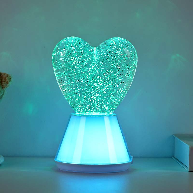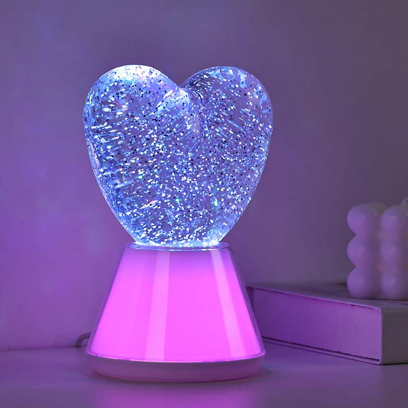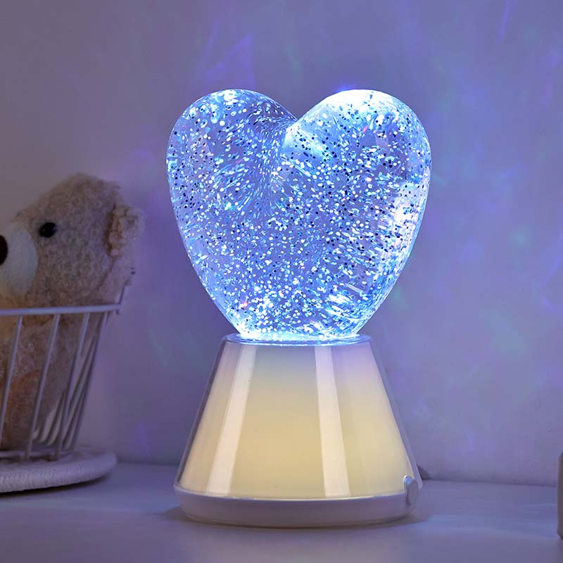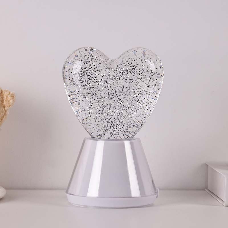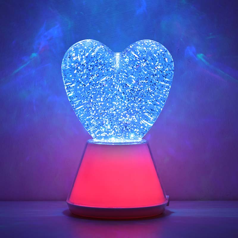 Жүрек көлеңкесі бар түсі өзгеретін сұйық жылтыр түнгі шам. ішінде жарқыраған блестки қалқып тұратын жұмбақ сұйықтықпен толтырылған керемет шыны шар бар. Таңғажайып, түсі өзгеретін сұйық жылтыр түнгі жарық жүрек көлеңкесі сиқырлы әлемде билегендей.