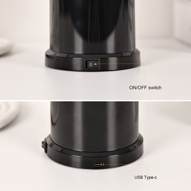 Жылтыр қара негізмен және қақпақпен жасалған шам кез келген интерьер декорын толықтыратын минималистік, бірақ күрделі эстетикаға ие. Төсек үстеліне, үстелге, сөреге немесе қонақ бөлмесінің екпініне қойылса да, оның талғампаз силуэті талғампаздықты қосады, сонымен бірге ішіндегі таңқаларлық көрініске назар аударады. Бүйірдегі қарапайым түйме қосқышы оңай жұмыс істеуге мүмкіндік береді — шамды қосу немесе өшіру үшін жай ғана басыңыз немесе түрлі-түсті режимдерді оңай айналдырыңыз.