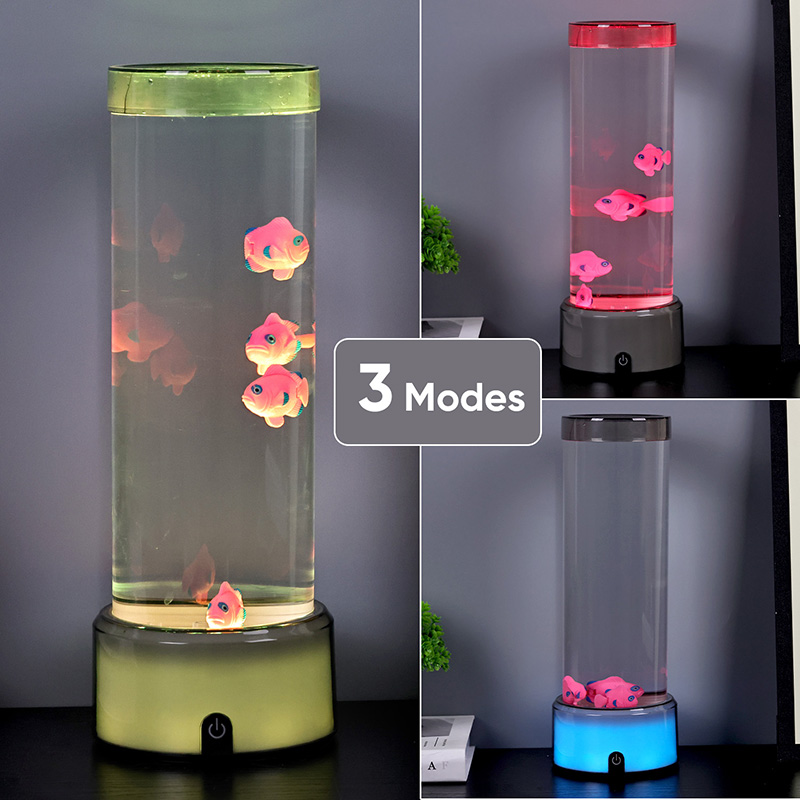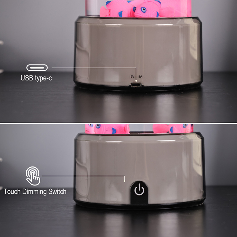 Таңдау қосқышын және медузаның жүзуін түртіңізRGB негізі декоративті шамы бар медузалық балық шамы, цилиндрлік су ұстағыш дизайнымен жаңадан жасалған балаларға арналған ойыншық. Суды толтырғаннан кейін ішіне үш кішкентай балық салынады. RGB негізі бар медузаның балық шамы төменгі жағындағы шағын қозғалтқыш айналғанда жоғары және төмен жүзе алады. Сонымен қатар, негіз RGB түсті түрлендіруге ие. Бұл өнімнің ең үлкен ерекшелігі - бұл негіз де түс түрлендіруімен өзгереді. Барлық пластикалық дизайн суды ұстамай өте жеңіл, бұл тасымалдауға өте ыңғайлы. Балық шамының қуат көзі USB типті C төмен кернеуімен қамтамасыз етілген, бұл өте ыңғайлы