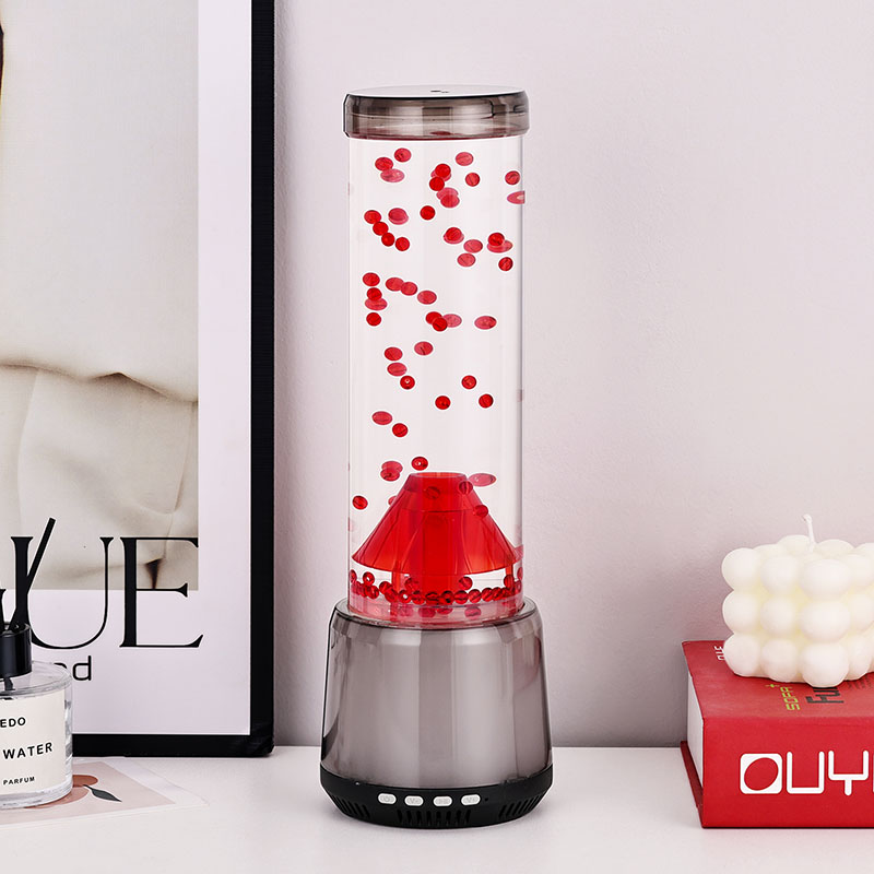 динамика, мұнда қызыл түсті көпіршіктер балқыған лаваның табиғи ағынын немесе мұхит ағындары арқылы медузаның нәзік жылжуын еліктейтін үздіксіз көтеріліп, төмендейді. Бұл гипноздық әсер тыныштандыруды тудырады