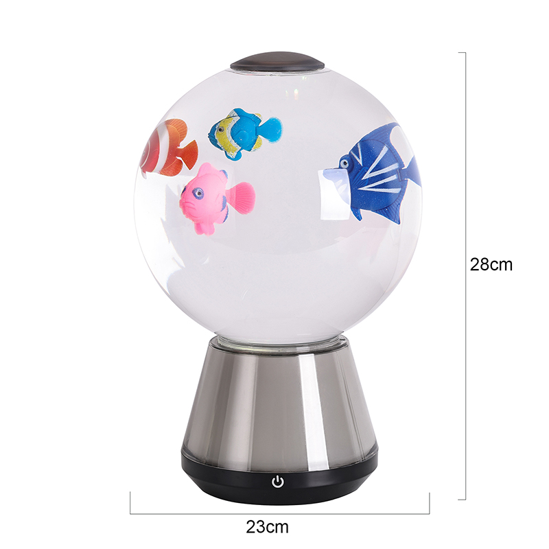 Орталық бөлік - су астындағы қозғалыс елесін күшейтетін жұмсақ, баяу қозғалатын сұйықтықпен толтырылған мөлдір цилиндрлік резервуар. Ішінде нақты контурларымен және нәзік бөлшектерімен жасалған күрделі жобаланған акуланың миниатюралық фигуралары ішкі жарықдиодты шамдармен жарықтандырылған жұмсақ, ағып жатқан медуза тәрізді элементтермен қатар тегіс айналады. Біріктірілген қозғалыс мұхит өмірінің тыныш ұлылығын тудыратын динамикалық, бірақ тыныштандыратын визуалды ырғақты жасайды. Жұмыстан кейін демалып жатсаңыз да, медитация жасайсыз ба немесе баланың ұйықтап кетуіне көмектессеңіз де, бұл шам стрессті азайтып, таң қалдыратын тыныш сенсорлық тәжірибені ұсынады.