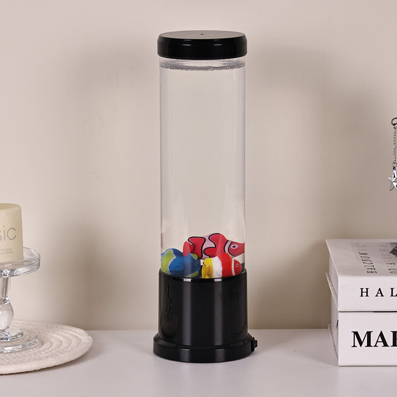 Су асты әлемінің таң қалдыратын сұлулығын үйіңізге немесе кеңсеңізге біздің инновациялық жарықдиодты модельденген балық резервуарының сәндік шамымен әкеліңіз. Эстетикалық тартымдылық пен практикалық ыңғайлылық үшін әзірленген бұл талғампаз қара биік шамда кез келген кеңістікте тыныштандыратын, тыныш атмосфераны жасайтын түрлі-түсті анимациялық балықтар мен жарқыраған медузаның әшекейлерімен толықтырылған шынайы аквариум әсері бар.