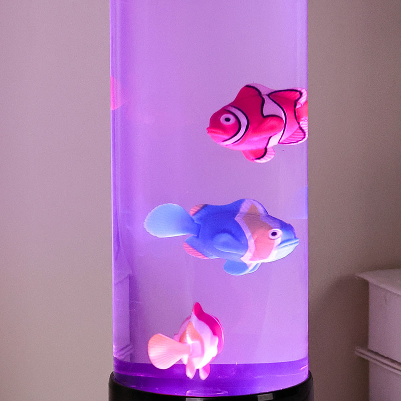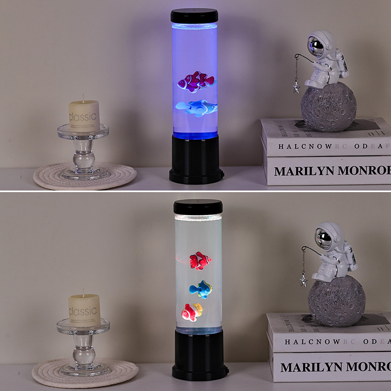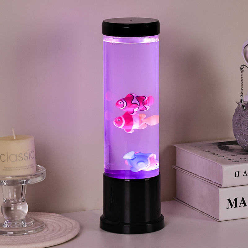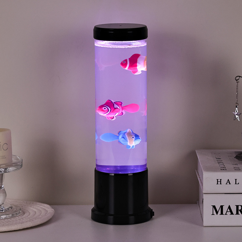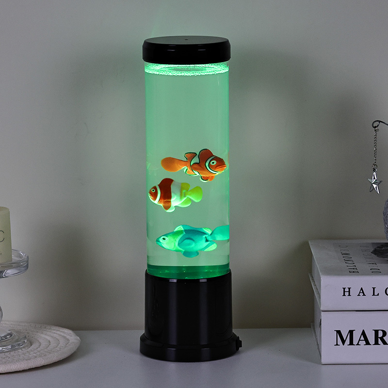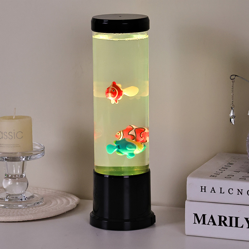 Бұл шамның негізінде нағыз балық аулауға арналған резервуардың мұқият жасалған симуляциясы жатыр. Мөлдір бағанның ішінде сіз су тәрізді сұйықтық арқылы ақырын қозғалатын және жүзетін жанды сайқымазақ және басқа тропикалық түрлер сияқты әдемі егжей-тегжейлі, жүзбелі балық фигураларды таба аласыз. Жарқыраған медузаның қосылуы су астындағы сиқырлы иллюзияны күшейтеді, эфирлік жарықпен жұмсақ импульс береді. Қозғалыс пен түстің үйлесімі назар аударатын және қоршаған ортаға тыныштық әкелетін динамикалық көрініс жасайды.