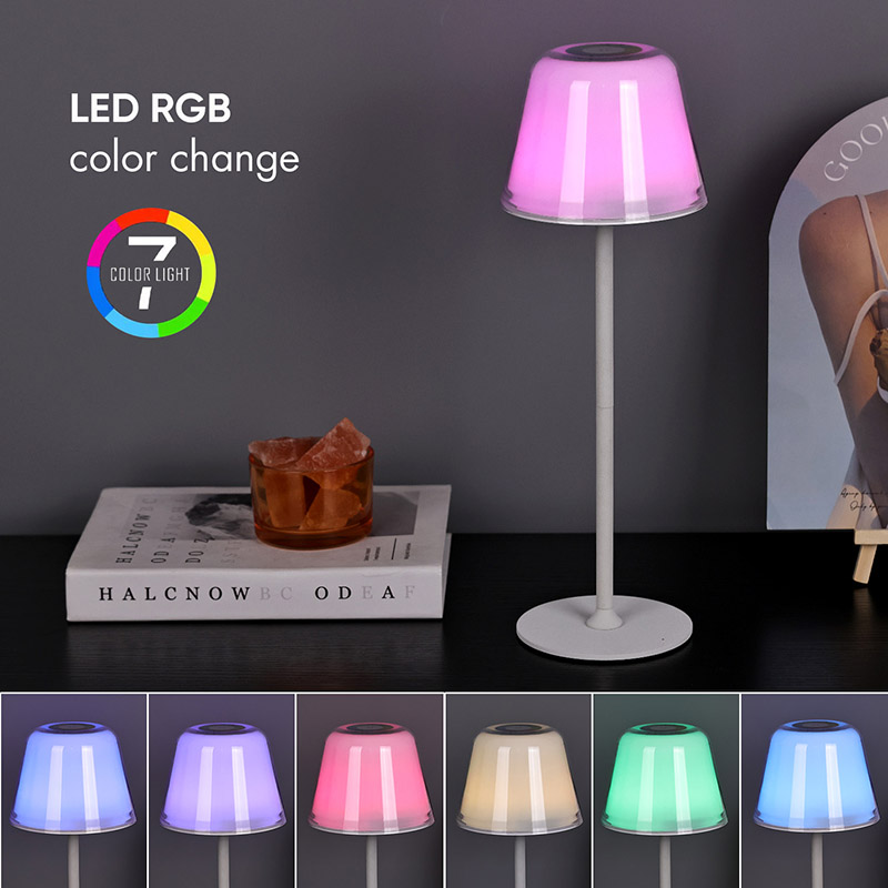 RGB түсін өзгерту шамы бар заманауи сымсыз шам қайта зарядталатын қауіпсіздік батареясымен жабдықталған, оны USB зарядтау кабелі немесе тікелей USB кабелі арқылы зарядтауға болады.
