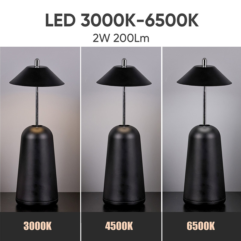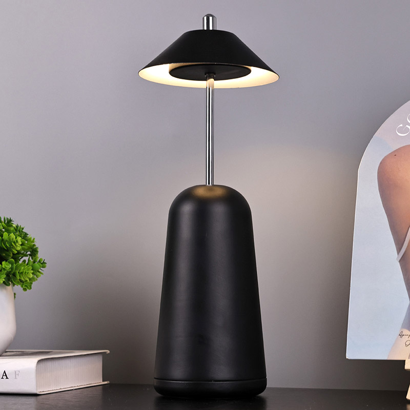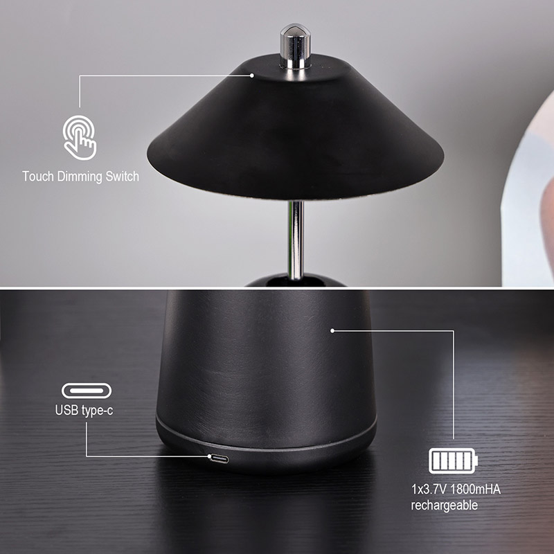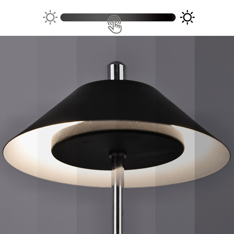 Биіктігі реңкін реттейтін заманауи жарықдиодты үстел шамының жарығы жылы түстермен және 3000K пен 6500K аралығындағы жарық қарқындылығының үш деңгейімен абажур ішіне кесілген. Шамның үстіңгі жағы антеннаға ұқсас сенсорлық қосқыш болып табылады. Негізі дұрыс емес цилиндрлік металдан тұрады