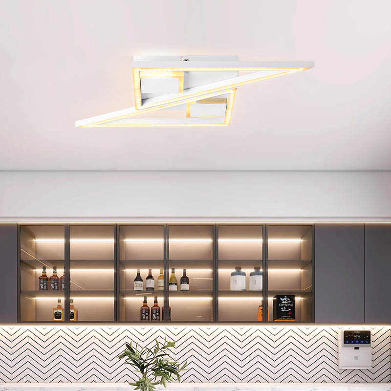 Заманауи қарапайым дизайндағы жылы жеңіл металл төбе шамы заманауи талғампаздық сезімін беретін қиылысатын жазықтықтармен және бұрыштармен сипатталатын таңғажайып геометриялық дизайнымен ерекшеленеді. Дизайнның таза сызықтары мен минималистік эстетикасы оны заманауи интерьер декорына тамаша үйлеседі. Ең алдымен төзімді пластиктен жасалған шамның құрылымы оңай орнату үшін жеңіл профильді сақтай отырып, ұзақ жұмыс істеуді қамтамасыз етеді.