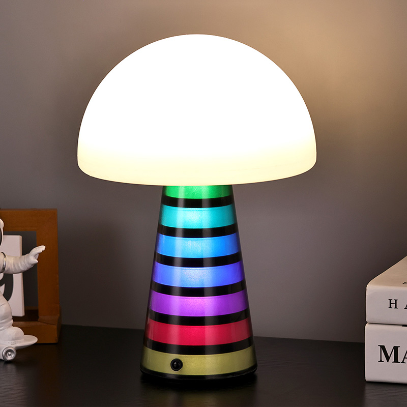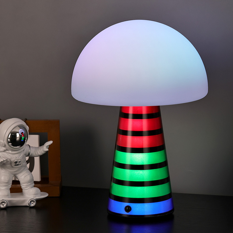 Digi RGB түнгі шамыҮстел шамының жалпы стилі сүйкімді, ал саңырауқұлақ пішінді дизайнмен біріктірілген ПВХ материалы балалар арасында өте танымал. Шам басы мен шам бағанасы түсті өзгерте алады, ал түстер кезектесіп өзгеріп, түстерді өте әдемі етеді. Сонымен қатар, үстел шамында жарықтандыру шамы ретінде пайдалануға болатын жылы түсті реттелетін жарық қарқындылығы бар. Бұл балалар стиліндегі жатын бөлмеде өте үйлесімді болады