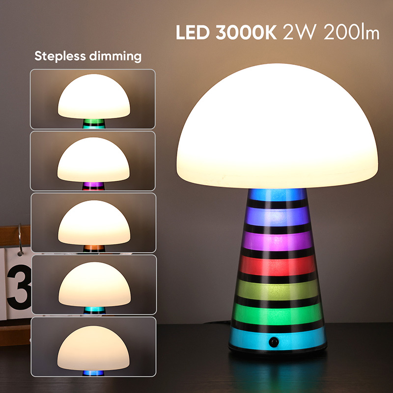 Саңырауқұлақ неонды түрлі-түсті үстел шамының өзінде қуат беретін C типті порты бар, жарық диоды 3000K- 6500K 2Watt 200lm Қосылған C типті кабель 1м, ішінде 5v1a қауіпсіз зарядтау бастары мен кабельдер бар.