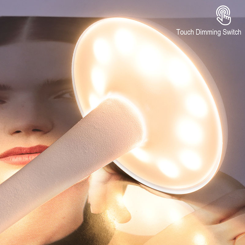 Қайта зарядталатын батареясы бар жаңа дизайндағы жарықдиодты үстел шамы жұмсақ жылы жарық шығаратын және жарықтың қарқындылығын реттей алатын жетілдірілген жарықдиодты жарық көзімен жабдықталған. Шексіз күңгірттеу көзіңізді тиімді қорғай алады. Қарапайым операциялар арқылы
