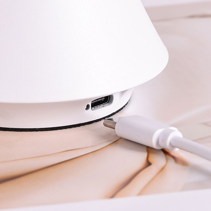 Қайта зарядталатын батареясы бар жаңадан жасалған жарықдиодты үстел шамы шамның негізін артқы жағында USB типті c бар