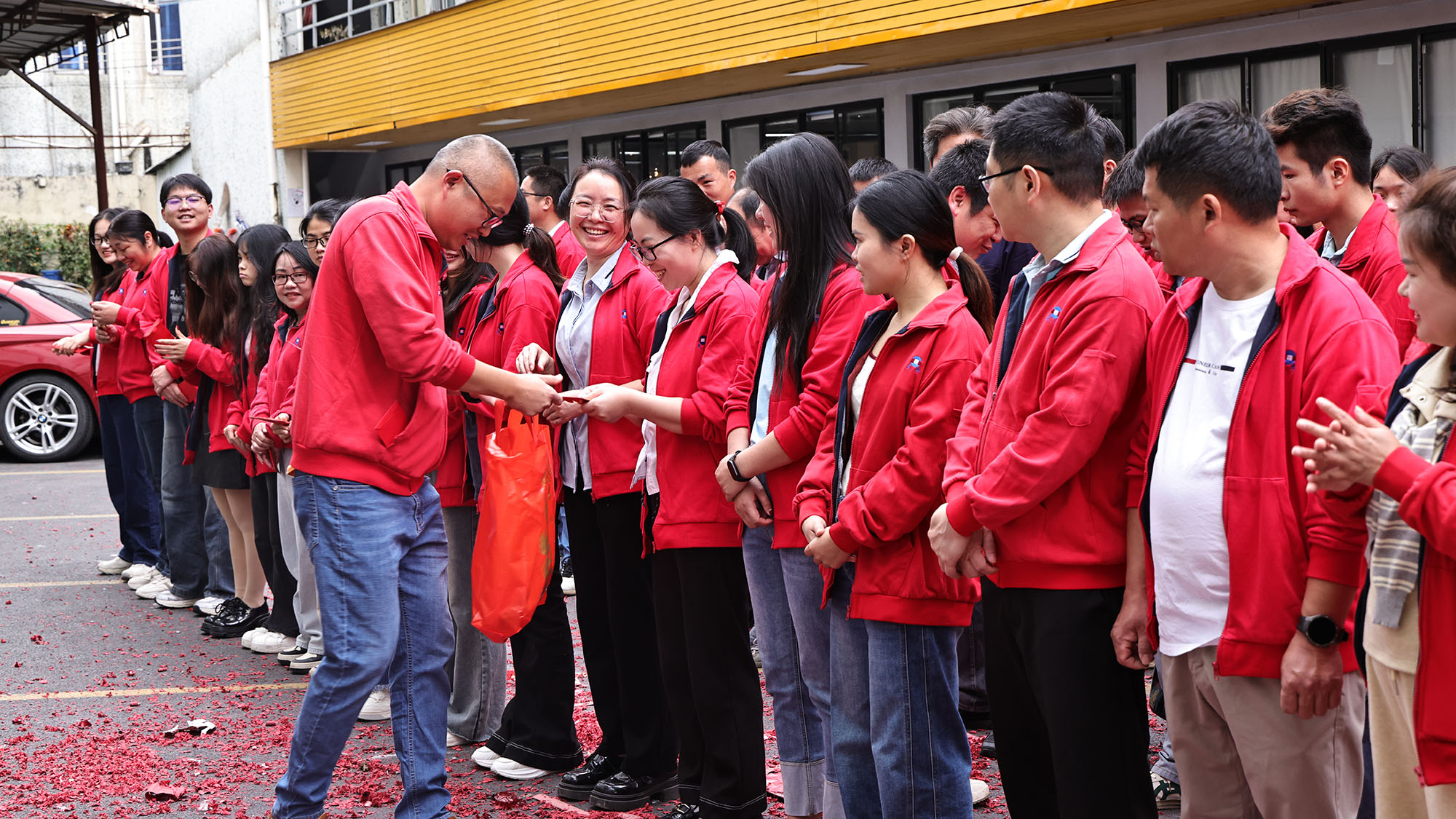 Кейіннен «Қызыл пакеттерді» таратудың қызықты сегменті сайттағы атмосфераны шарықтау шегіне жеткізді. Компания басшылығы әр қызметкерге қызыл конверттерді (Ли Ши) таратты. Бұл ауыр қызыл пакеттер компанияның өз қызметкерлеріне деген қамқорлығы мен батасын ғана емес, сонымен қатар жаңа жылда барлығының тегіс жұмысы мен бақытты өмір сүруіне деген әдемі үмітті алып жүрді. Қызыл пакеттерді алған қызметкерлер «Берекелі бастама» құттықтауларын білдіріп, қуанышты күлімдеді. Күлкі мен қуаныш жаңа жылдың күшті дәмін адамдық жылумен тоғыстырып, әр адамның жүрегіне жылу сыйлады.