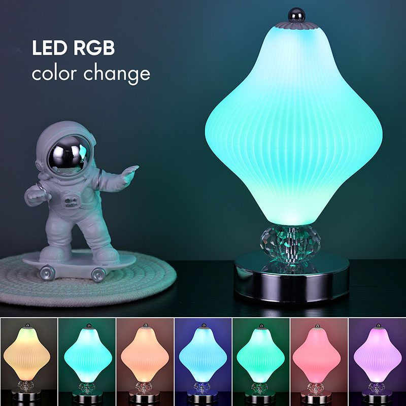 Бірегей абажур дизайнымен қатар, бұл шағын үстел шамы сонымен қатар жарқын RGB түсті функционалдығын ұсынады. Жетілдірілген LED технологиясы арқылы жарықтандыру құрылғылары жұмсақ және біркелкі жарық шығара алады және әртүрлі көріністер мен қажеттіліктерге сәйкес жарықтың түсін еркін реттей алады. Сіз өзіңіздің сүйікті түсіңізді таңдай аласыз немесе түрлі-түсті көрнекі мереке жасау үшін жарықтандыру құрылғыларының түстерді автоматты түрде өзгерте аласыз.