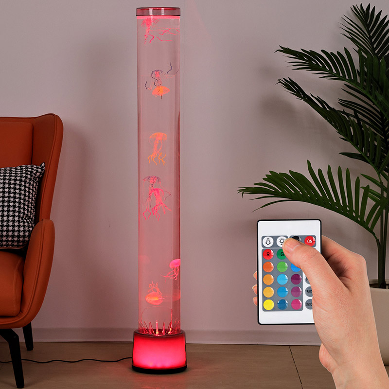 39,5*39,5*113смRGB Floor Meduza шамы - заманауи технологияны табиғи эстетикамен үйлестіретін үй декорының шығармашылық бөлігі. Ол өзінің армандаған жарық пен көлеңке әсерлерімен және медузаның шынайы дизайнымен ішкі кеңістіктерге жұмбақ және тыныш мұхит атмосферасын қосады. Бүкіл дизайн мөлдірлігі жоғары акрилден жасалған, су астындағы миниатюралық әлемге ұқсайтын жіңішке және талғампаз пішіні бар, сізді теңіздің тереңінде жүргендей батырады.