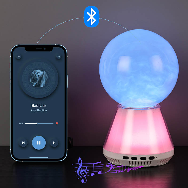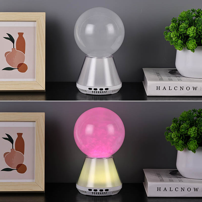Шыны шардағы сұйықтық ағынын бұлт тәрізді күйге, негіз мен сұйықтық арасындағы синхрондалған түс өзгерістерін және музыканы ойнату үшін Bluetooth қосылымын біріктіретін bluetooth басқаруымен RGB жарықдиодты жарқыл шамы сіз үшін арманшыл әлем құруға арналған. Bluetooth басқаруы бар RGB жарықдиодты жарқырау шамы - бұл практикалық түнгі шам ғана емес, сонымен қатар сиқырлы өнер туындысы.