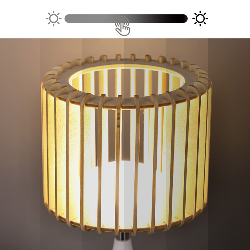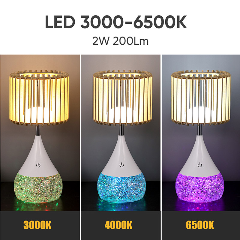 Дәлдікпен жасалған жаңа дизайндағы жарықдиодты үстел шамы берік пластикалық материалдардан жасалған тегіс және талғампаз дизайнмен ерекшеленеді. Шамдар табиғи ағаш тақтайшалардан жасалған, бұл көрнекі және заманауи көріністі жасайды. Сіз оны үстеліңізге, тумбочкаға немесе кез келген басқа бетке қойсаңыз да, бұл шам сізді қызықтырады және қуантады.