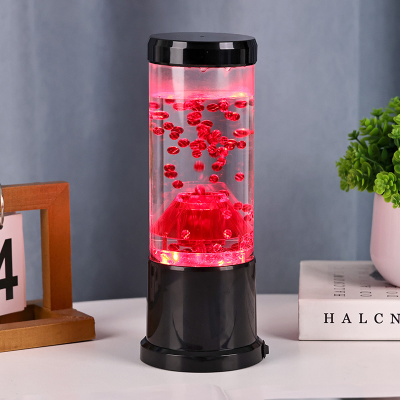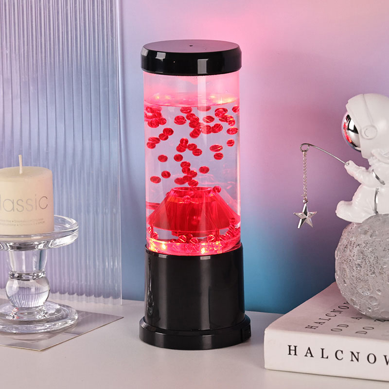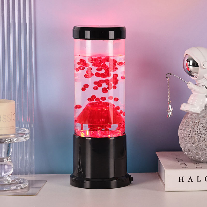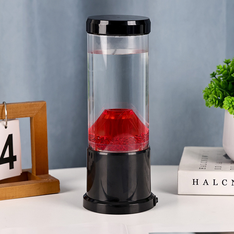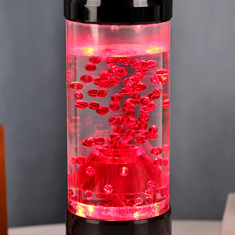 Түнгі жарықтың орталық бөлігі - жанартау кратеріне ұқсайтын мөлдір баған. Бұл бағанның ішінде сіз жер қыртысында ағып жатқан балқытылған лаваны еске түсіретін қызыл шарлардың жанды көрінісін таба аласыз. Бұл шарлар мөлдір сұйықтықтың ішінде әдемі қалқып, динамикалық және үнемі өзгеретін визуалды әсер жасайды. Жарық жарқырап тұрғанда, ол кез келген бөлмеде жайлы атмосфераны орнатуға өте ыңғайлы жылы және тартымды жарқыл береді.