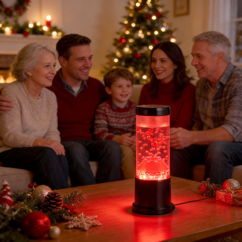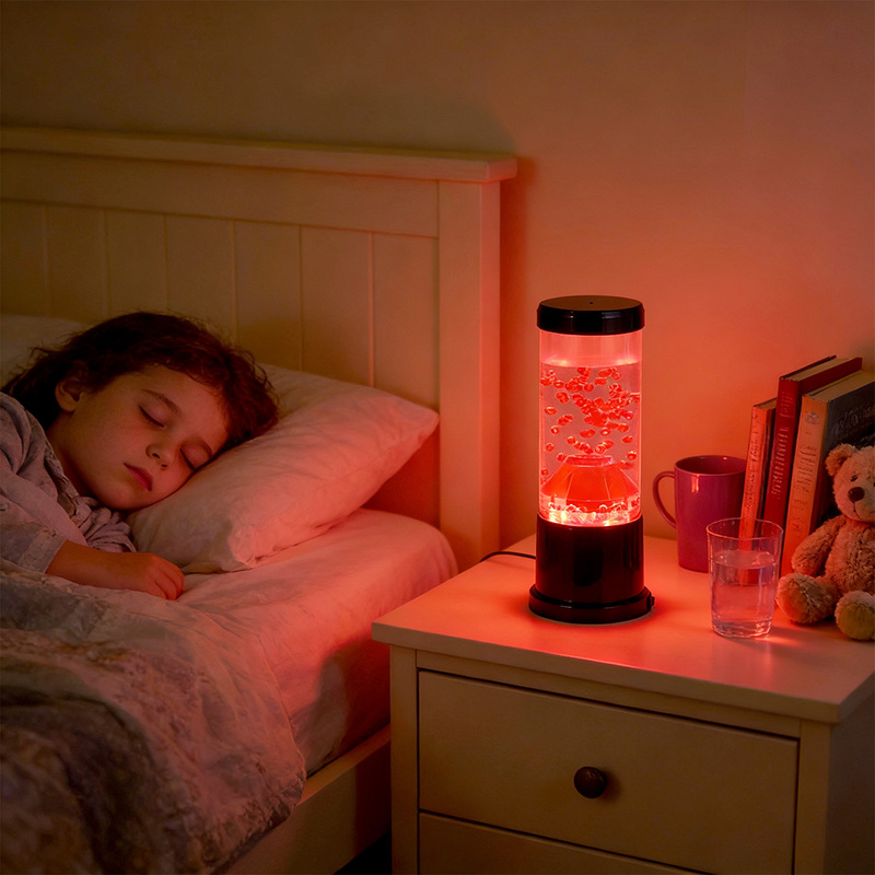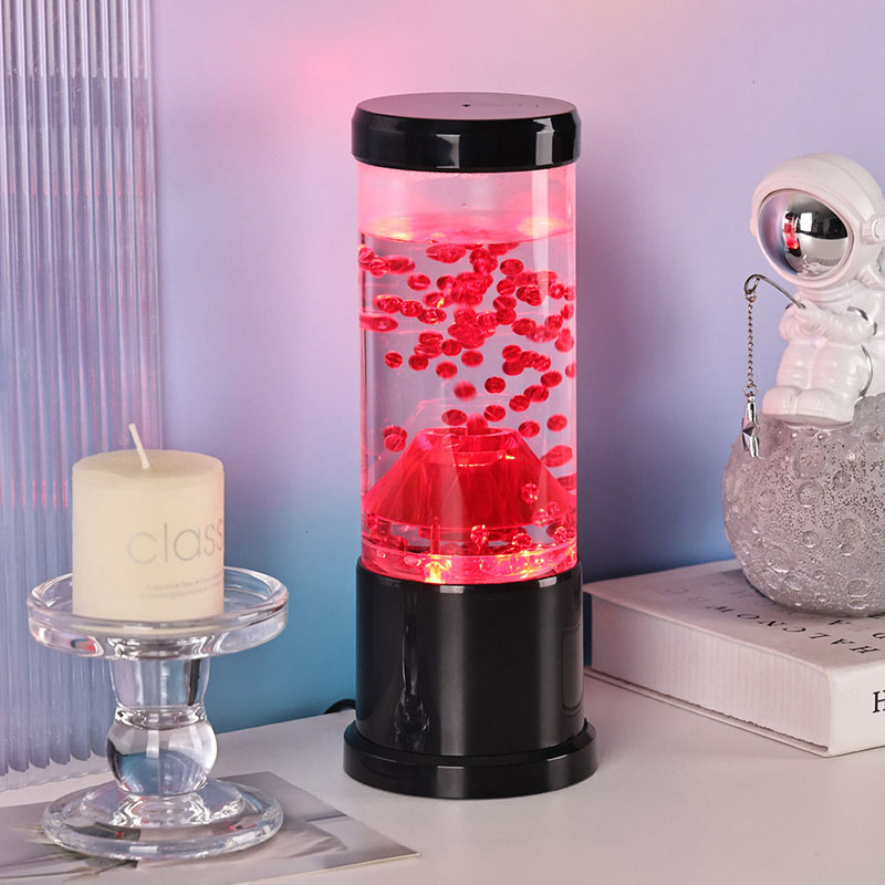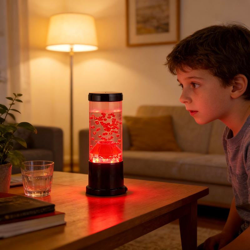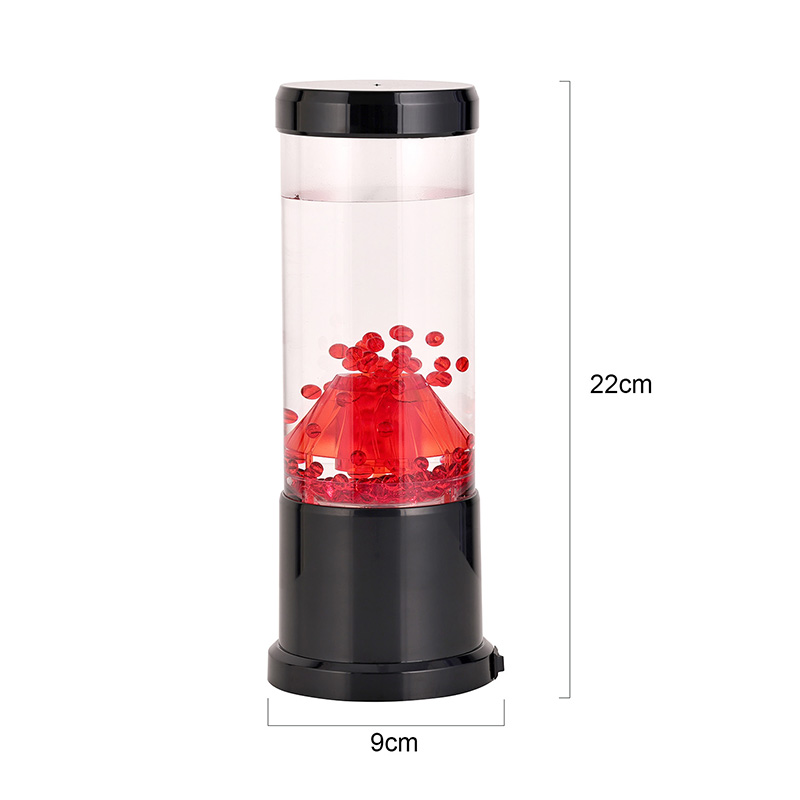 Түнгі жарықтың орталық бөлігі - жанартау кратеріне ұқсайтын мөлдір баған. Бұл бағанның ішінде сіз жер қыртысында ағып жатқан балқытылған лаваны еске түсіретін қызыл шарлардың жанды көрінісін таба аласыз. Бұл шарлар мөлдір сұйықтықтың ішінде әдемі қалқып, динамикалық және үнемі өзгеретін визуалды әсер жасайды. Жарық жарқырап тұрғанда, ол кез келген бөлмеде жайлы атмосфераны орнатуға өте ыңғайлы жылы және тартымды жарқыл береді.