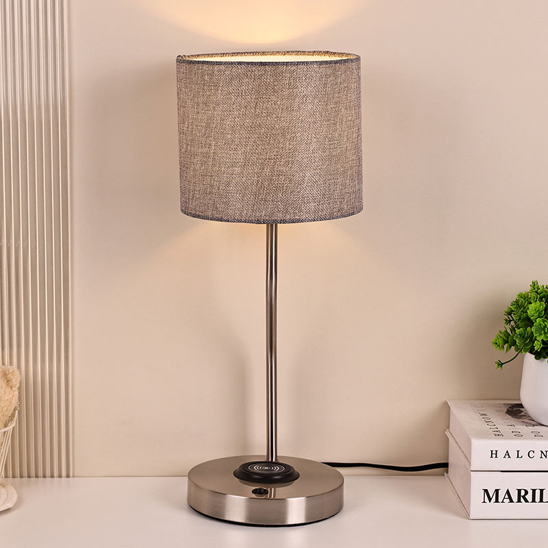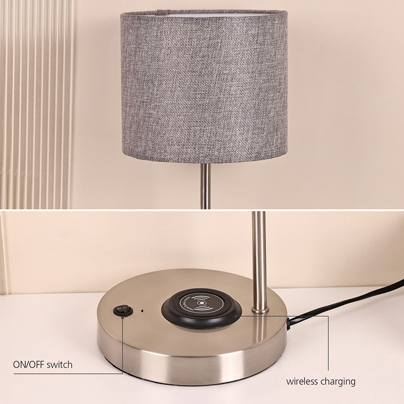 Негіздегі ҚОСУ/ӨШІРУ қосқышымата көлеңкесі бар сымсыз телефон зарядтағыш үстел шамы нәзік және жұмсақ мата, мөлдір және табиғи құрылымы бар жоғары сапалы шүберек жабын дизайнын қабылдайды, адамдарға жылы және жайлы сезім береді. Шүберек жабыны жарықты тиімді түрде таратып қана қоймай, жарықты жұмсақ әрі біркелкі етіп қана қоймайды, сонымен қатар көздің жарқырауы мен тітіркенуін азайтып, көруіңізді қорғайды. Сұр матаның жабыны қарапайым және талғампаз түсті реңкке ие, ол әртүрлі интерьерді безендіру стильдерімен тамаша үйлеседі, жылы және талғампаз атмосфераны жасайды.